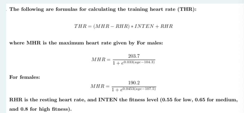 Haskell and Fox formula. HRmax 208 07 age 2. Maximum workout heart rate.